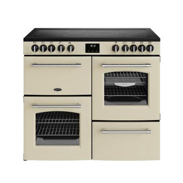 The Belling Farmhouse 100cm Electric Range Cooker in a classic cream finish brings a touch of traditional country charm to any kitchen while offering modern cooking versatility. This A rated appliance features a multi cavity design that includes a 33 litre grill and a 60 litre conventional oven, perfect for managing complex family meals or large Sunday roasts. The primary 64 litre fan oven is enhanced with a dedicated air fry function and tray, providing healthier cooking options without the need for additional countertop appliances. With its five zone ceramic hob and integrated storage compartment, this cooker offers a comprehensive and stylish solution for a busy home.