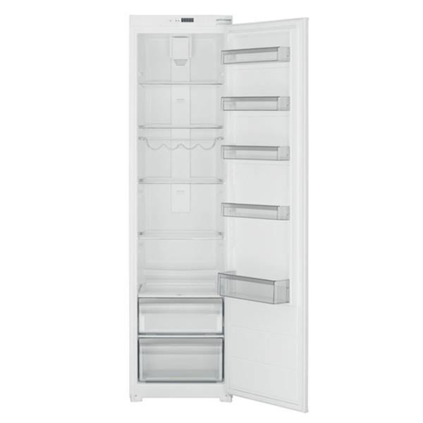 The Belling built-in tall larder fridge provides a generous 305-litre capacity, making it an ideal choice for households that prefer to batch cook or store large quantities of fresh produce. This integrated appliance features a sophisticated silver-trimmed interior and fully electronic controls to ensure precise temperature management for all your groceries.