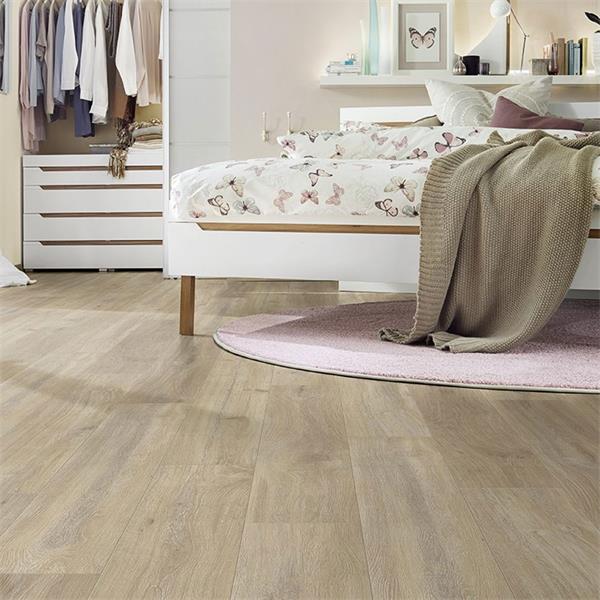 Introducing Bermuda Oak, a beautiful 12mm laminate flooring that combines realistic wood aesthetics with a contemporary feel.