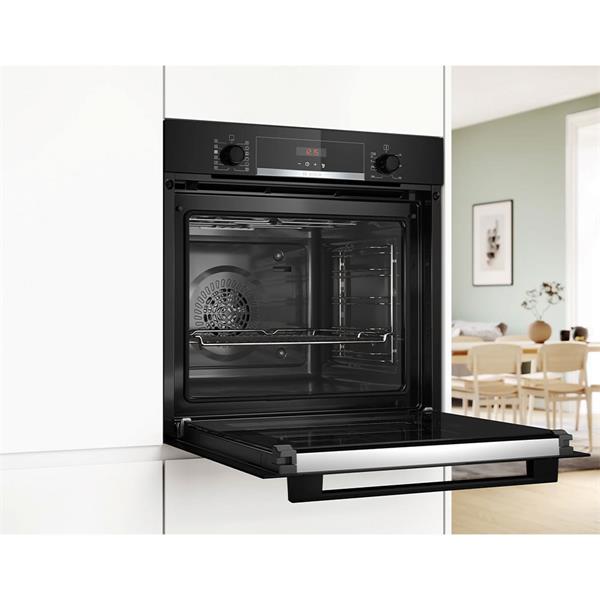 Experience culinary excellence with the Bosch Built In Oven with Steam Function, part of the innovative Series 4. Perfectly designed for modern kitchens, this sleek black oven not only enhances your culinary skills but also complements your kitchen aesthetics.