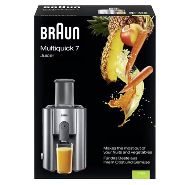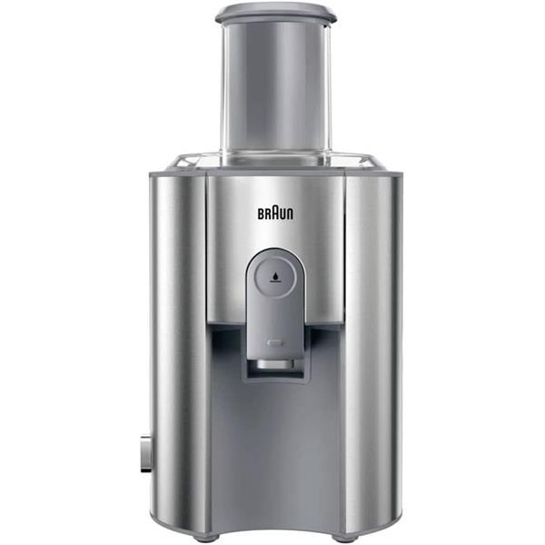 The Braun centrifugal juicer, is presented in a sleek grey finish, designed for efficient and convenient juice extraction. It features a wide feed chute, typically around 75mm, allowing users to juice whole fruits and vegetables with minimal pre-cutting. The powerful motor, combined with durable stainless steel sieve and cutting elements, ensures high juice yield and rapid processing. This model often includes a large pulp container and a dedicated juice jug with a foam separator, making it easy to prepare clear, fresh juice. For safety and stability, it incorporates anti-slip feet and a safety lock system, while its disassemblable parts are generally dishwasher-safe for effortless cleaning.