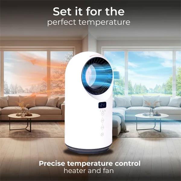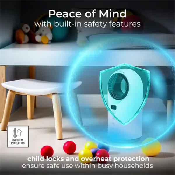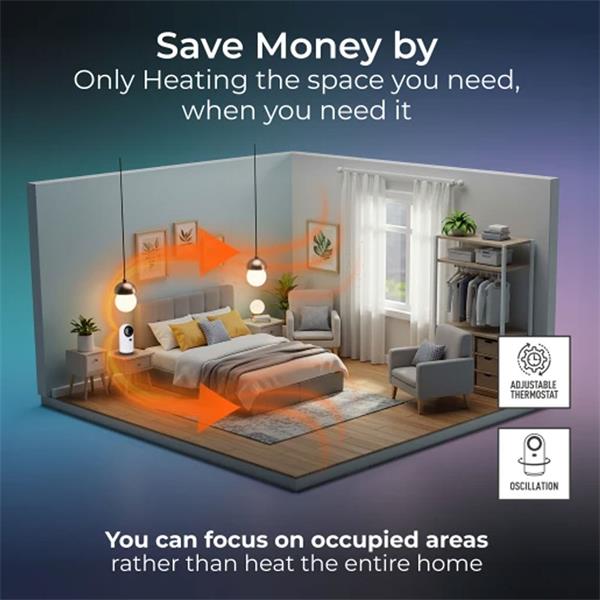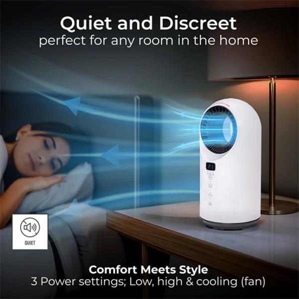 Designed for convenience and efficiency, its portable form factor includes a 60º rotation function, enabling you to direct heat precisely where it's needed, thereby saving energy. Utilising advanced ceramic technology, it delivers instant warmth, while its quiet motor ensures silent operation, making it ideal for any room without disturbance.