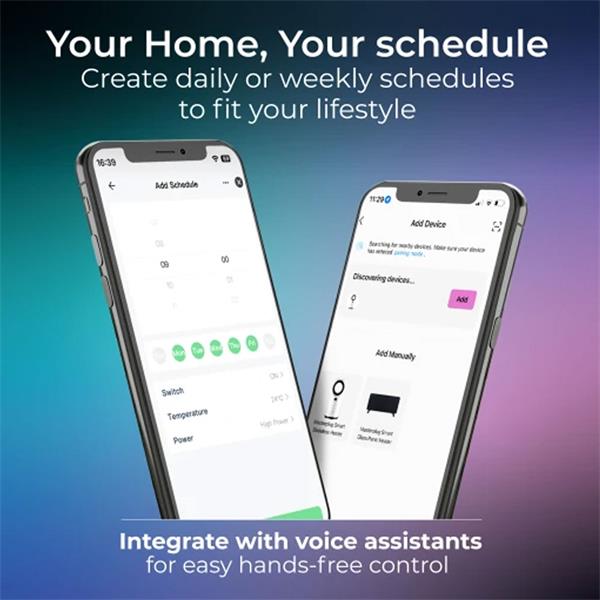 This heater boasts smart Wi-Fi connectivity and an in-built energy usage and cost monitoring system, offering complete transparency over your heating expenditure. You can precisely track how much energy you're consuming, set convenient timers and schedules, and even receive energy and cost reminders, all designed to help manage your bills efficiently. With the intuitive Masterplug SmartEnergy app, real-time energy cost tracking is at your fingertips, and the device is fully compatible with popular voice assistants such as Amazon Alexa and Hey Google, allowing for effortless control via its LED display, voice commands, or the app itself. Discreet controls with a power indicator further ensure ease of use.