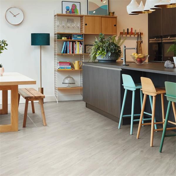 Bring contemporary chic and timeless elegance to your home with the Palio Rigid Bridgeport flooring from Palio Express by Karndean. This luxury LVT flooring features a light grey hue and subtle grain texture, perfect for creating a modern and airy atmosphere in any room.