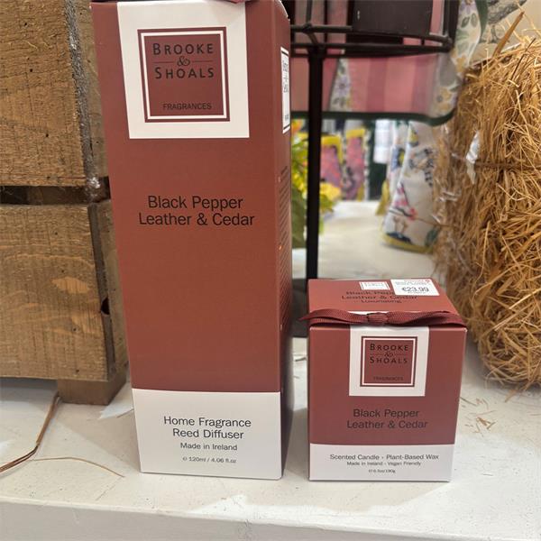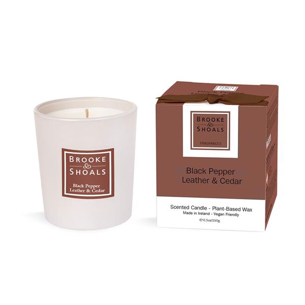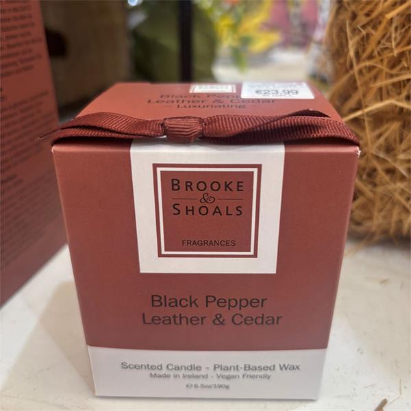 The Brook & Shoals Regular Candle in Black Pepper, Leather, and Cedar offers a sophisticated aroma that enriches any space, creating a warm and inviting atmosphere perfect for relaxation or entertaining.