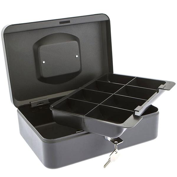 The Burg Wachter 10" Cash Box is supplied in black and benefits from a secure lock which is supplied with 2 keys. There is a strong recessed metal handle and the box has rounded corners. Inside there is a removable partitioned coin tray.