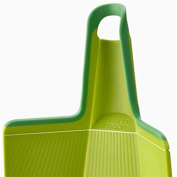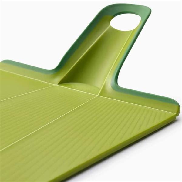 The Chop2Pot Plus is the original folding chopping board designed to make transferring food simple. When laid flat, it provides a knife-friendly and non-slip surface for all your food prep. To transfer, just squeeze the handle and the sides fold up, creating a handy chute to neatly guide chopped food or waste. It's also dishwasher safe.