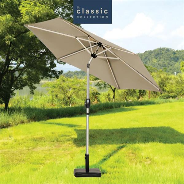 The Classic Collection Parasol Aluminum Cranked Khaki 2.7Mtr is your perfect outdoor companion, designed to provide optimal shade and elegance for any garden or patio setting. Crafted from durable aluminium, this expertly engineered parasol features a user-friendly crank mechanism, allowing easy opening and closing for effortless operation. With its stylish khaki colour, it complements a variety of outdoor aesthetics while safeguarding you from harsh UV rays. Enjoy enhanced outdoor relaxation with this reliable and chic canopy solution, meticulously made for lasting performance and comfort.