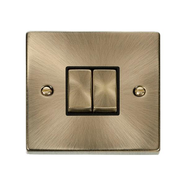 The Click Deco 2 Gang 2-Way Switch in Antique Brass with Black Insert (VPAB412BK) offers a stylish and modern way to control your lighting or appliances. Its elegant antique brass finish, complemented by a sleek black insert, adds a touch of sophistication to any room.