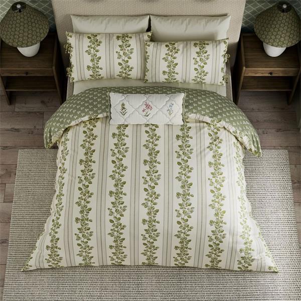 The Sanderson Cobnut Stripe Duvet Set in Leaf Green brings a touch of elegance and comfort to your bedroom. Crafted from high-quality, breathable cotton, this duvet set offers a soft, inviting feel that enhances your sleep experience. The sophisticated stripe pattern in a soothing leaf green hue effortlessly complements a variety of décor styles, making it a versatile choice for any room. Discover the perfect blend of style and comfort with this exquisite duvet set, designed to create a calming retreat in your home.