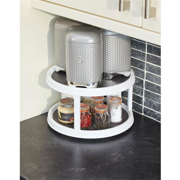 The Copco Double Layer White Lazy Susan Food Storage organiser is a practical and space-saving kitchen solution designed to improve accessibility and organisation. It features a clean white, two-tier rotating design that allows items on both levels to spin smoothly for easy reach, even in deep cupboards or on crowded countertops. Made from durable plastic, it includes raised edges and a non-slip surface to help keep jars, bottles, spices and condiments securely in place while rotating. Its compact and functional structure makes it ideal for kitchens, pantries, fridges or utility rooms. Combining simplicity with efficiency, this Lazy Susan helps keep everyday food items neatly arranged and easily accessible.