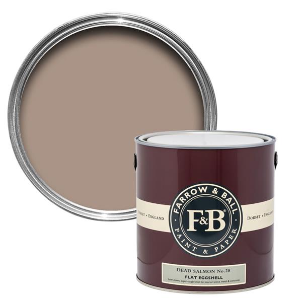 Dead Salmon No. 28 is an incredibly complex, aged salmon pink whose name references an old 'flat' finish found at Kedleston Hall in 1805. This subtle, deep shade shifts wonderfully in the light, appearing as a warm buff neutral or a rosy mushroom, making it perfect for creating serene, intimate environments, particularly in candlelit dining rooms. The Flat Eggshell finish is a low-sheen (20%), water-based paint formulated for super-tough durability. It is scrubbable, stain-resistant, and scuff-proof, ideal for demanding interior surfaces like woodwork, kitchen cabinets, radiators, and even floors.