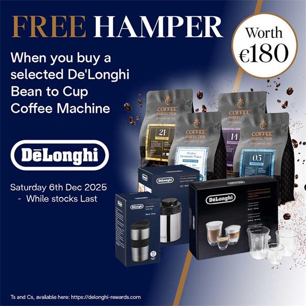 Claim your FREE Delonghi Bean to Cup Hamper worth €180 - https://delonghi-rewards.com/promotions