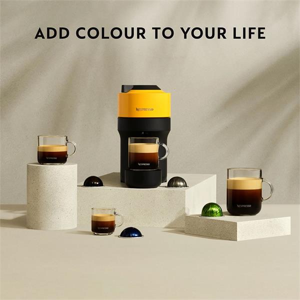 Indulge in your favourite coffee moments. Bring home the Delonghi Nespresso Vertuo Pop Coffee Maker in Yellow and transform your daily brew experience!