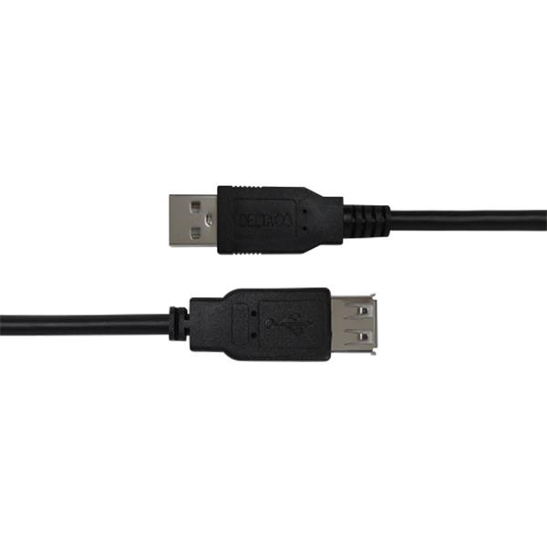 DELTACO USB 2.0 Extension cable, 2m, USB-A male to USB-A female, black Cables are sometimes just too short. This USB extension cable makes installation of all USB-equipment extremely convenient. Simply plug one end into your USB-A compatible device and connect your USB peripheral in the other end, it couldn't be simpler.
