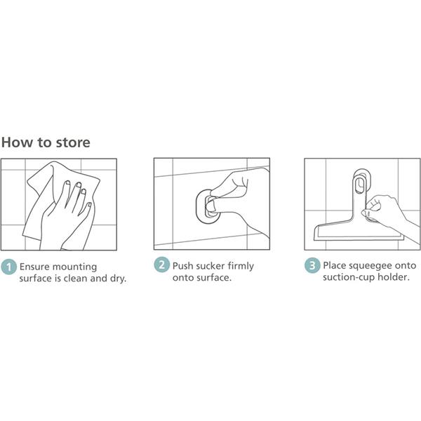 This slimline, space-saving squeegee is designed for precision cleaning. Its full-width flexible blade and extended side blades allow you to easily clean corners and a variety of glass and tiled surfaces. It also comes with a suction-cup storage holder so you can conveniently attach it to tiles or glass.