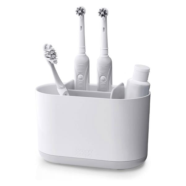 Bring order and elegance to your bathroom counter with this clever oral care organiser. Designed to hold both traditional and powered toothbrushes along with toothpaste, it provides a neat and hygienic storage solution. Its non-slip base keeps it securely in place, while a ventilated design ensures quick drying. The unit also easily dismantles, making it simple to keep clean and pristine.
