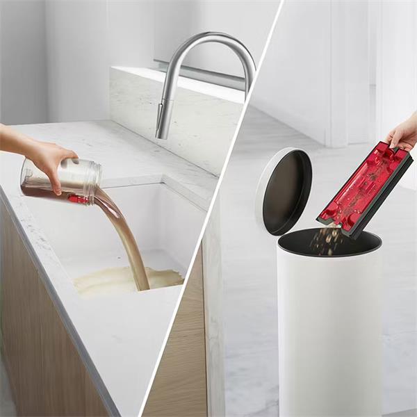 - Hygienic Waste Disposal: The unique system automatically separates wet and dry waste into separate containers. Debris collects in a removable tray, and dirty liquid is pumped into a separate tank for hygienic, no-touch disposal.