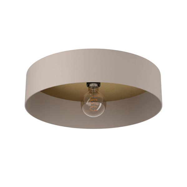 The DUAIA ceiling light features a sleek taupe metal body paired with a round lampshade. Inside, a decorative panel can be mounted in two stylish finishes—brushed brass or a walnut-wood effect—allowing for a customised look. Designed to complement modern interiors, this versatile ceiling light provides downward illumination, making it ideal for kitchens, living rooms, bedrooms, or hallways. It is fitted with an E27 lamp holder and requires one E27 lightbulb, which is not included.
