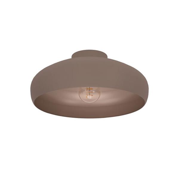 The MOGANO ceiling light features a round, mocha-coloured metal lampshade with a matching inner finish. Its sleek, monochrome design effortlessly complements modern interiors, providing a minimalist lighting solution for any room, including the kitchen, living room, bedroom, or hallway. The light is equipped with an E27 lamp holder and requires a single E27 bulb, which is not included.