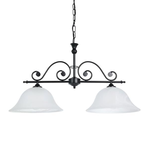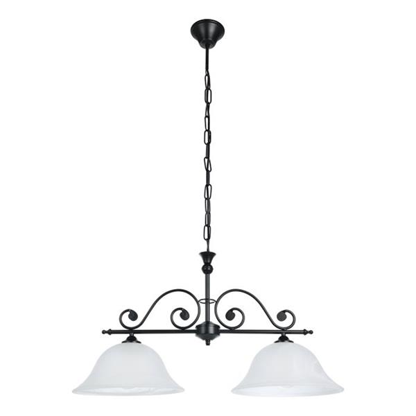 The Eglo MURCIA double pendant light in black is a sophisticated fixture that blends both classic and modern elements together. It perfect for illuminating dining areas, kitchen islands, or living rooms. It features a rectangular black steel bar from which two round, white alabaster glass shades are suspended, creating a striking visual contrast and diffusing light beautifully to provide a soft, inviting glow. With a maximum height of 110cm and a length of approximately 68cm, this pendant requires two E27 bulbs (max 60W each, not included) and is dimmable with compatible bulbs and a dimmer switch, offering both ample illumination and adjustable ambiance for a statement lighting piece.