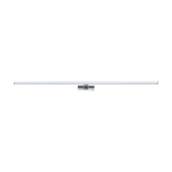 The Eglo PANDELLA 1 mirror light in the 1200mm chrome and silver finish (e.g., Material number 203939) is a sleek and modern LED bathroom fixture specifically designed for horizontal mounting above mirrors. This slim, linear light combines chrome-finished aluminium with silver plastic and a white diffuser to provide a clean aesthetic. Crucially, it features an integrated LED that emits a bright neutral white light (4000 Kelvin), ideal for tasks, and boasts an IP44 rating for splash-proof safety in bathroom environments. This non-dimmable fixture is a popular choice for contemporary bathrooms, widely available from lighting and bathroom suppliers.