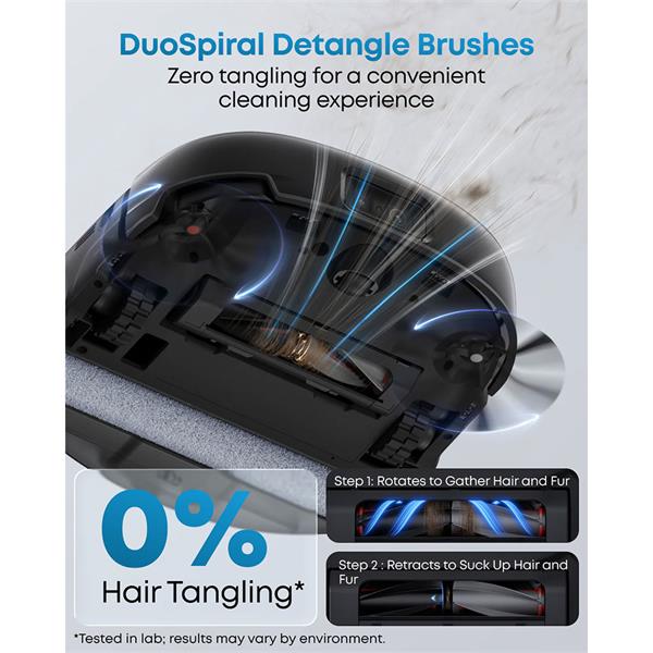 Equipped with a dual water reservoir system, the Eufy E25 keeps clean and dirty water separate, ensuring optimal mopping performance. Enjoy the freedom of automated cleaning with a vacuum that operates with ease and efficiency.