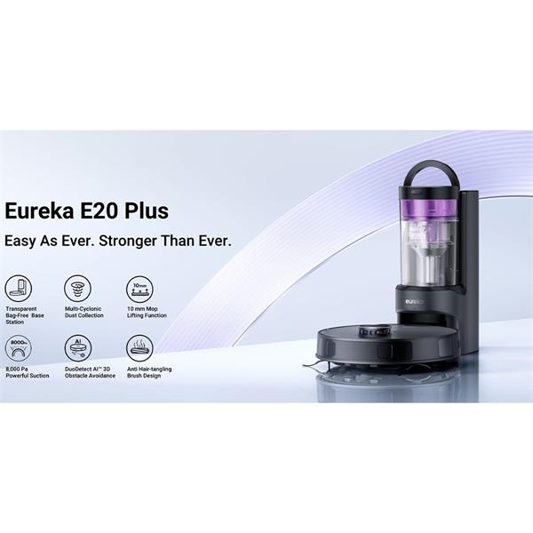 With smart technology and a sleek design, the Eureka E20 Plus effortlessly navigates through your home, ensuring every corner is reached and every surface is cleaned. Enjoy the freedom of a hands-free cleaning solution that works around your busy schedule.
