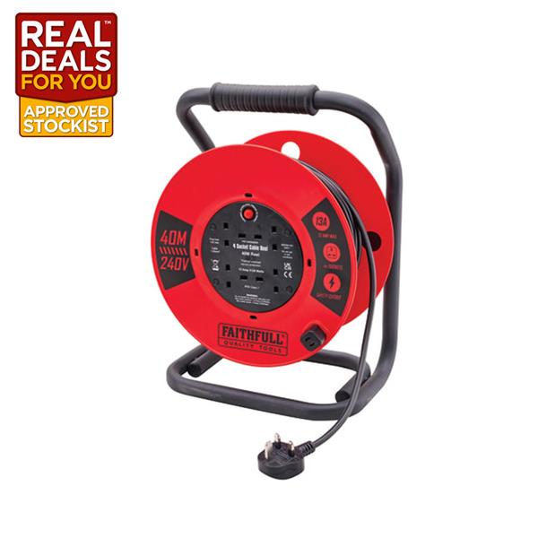 Manufactured by Faithfull, this reel features a robust steel frame construction and a long 40 metre (13A, 1.25mm diameter) cable. It includes four outlet sockets, enabling you to easily run multiple power tools on site or at home. A smooth winding knob allows for tangle free reel in, and the integrated carry handle ensures simple transport. A perfect addition to your Get Kitted Out order.