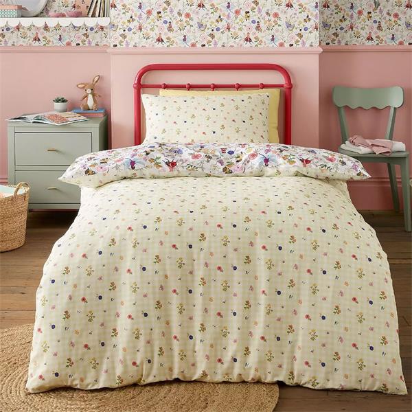 Fully Reversible: Switch between the main meadow scene and a sunny yellow gingham check reverse, adorned with a gentle scatter of ditsy florals.