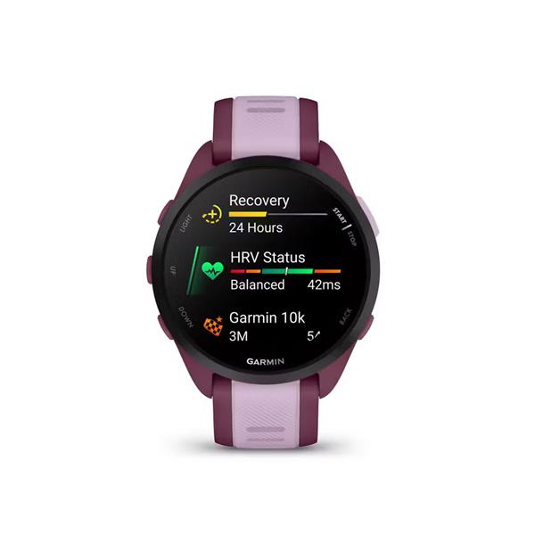 The Forerunner 165 is a purpose-built GPS running watch for beginners, helping you meet your goals with personalised adaptive training plans and a bright display. It features a 1.2 inch colourful AMOLED display and has a long battery life of up to 11 days in smartwatch mode or 19 hours in GPS mode.