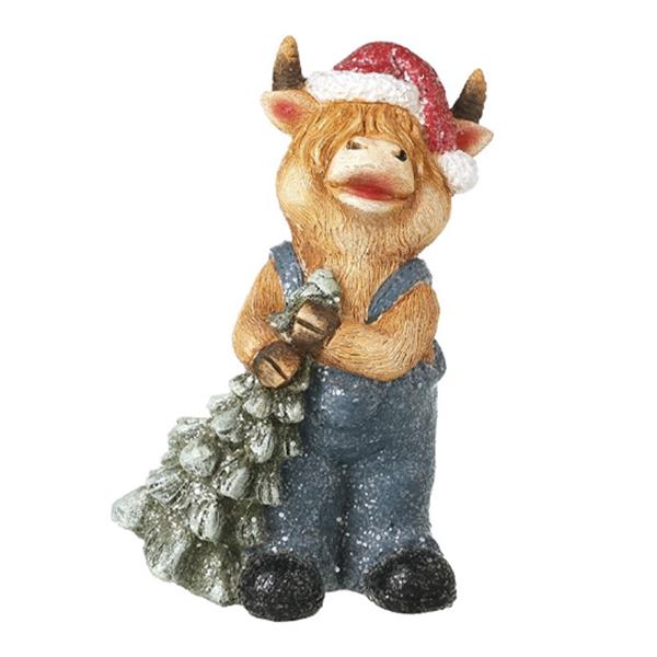 The Heaven Sends Highland Cow in Blue Dungarees with Tree is a delightful decorative ornament featuring a cute Highland cow dressed in blue dungarees, holding a festive Christmas tree. Full of rustic charm and playful character, it’s an ideal addition to a cosy, country-style Christmas display.