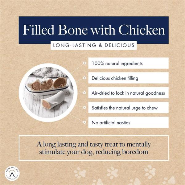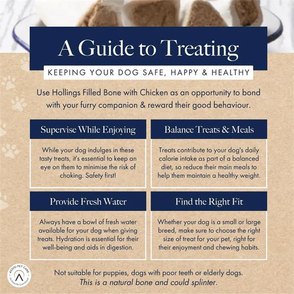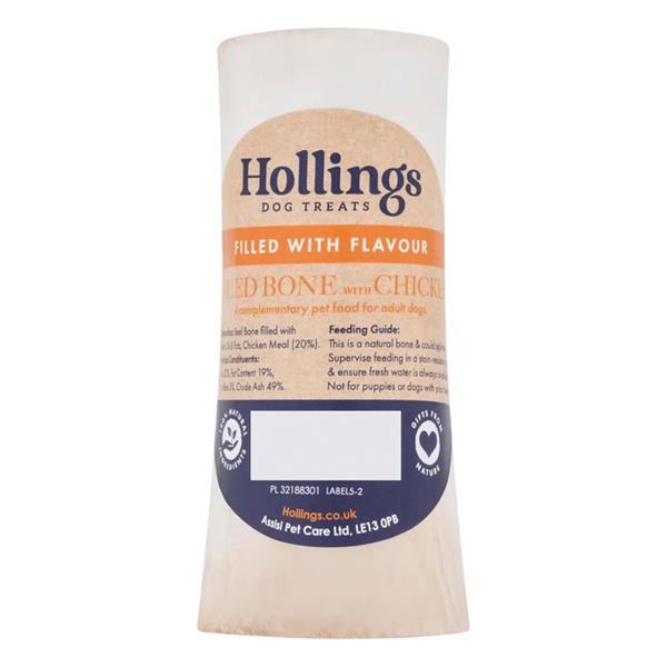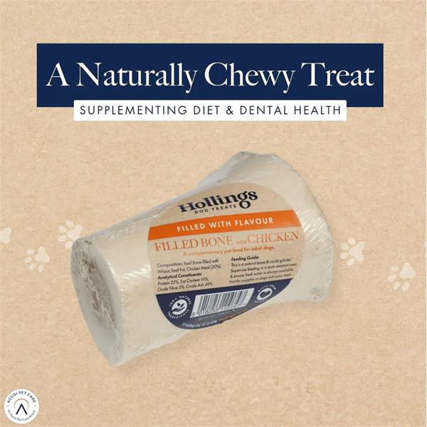 The Hollings Chicken Filled Bone offers a delicious and nutritious treat for your dog, promoting dental health while satisfying their natural chewing instincts.