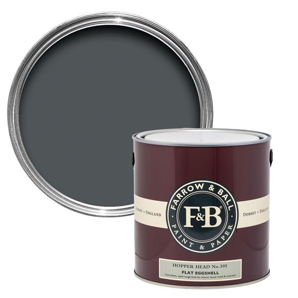 Hopper Head No. 305 is a classic charcoal shade that sits between the deep colours of Railings and Down Pipe, taking its name from the attractive iron containers used to catch rainwater at the top of a downpipe. Available in Flat Eggshell, this low-sheen (20%), super-tough finish is perfect for adding a dramatic, inviting feel to interior wood, metal, and concrete. Since it is highly scrubbable, stain-resistant, and scuff-resistant, the formulation is durable enough for demanding surfaces like kitchen cabinets and floors.