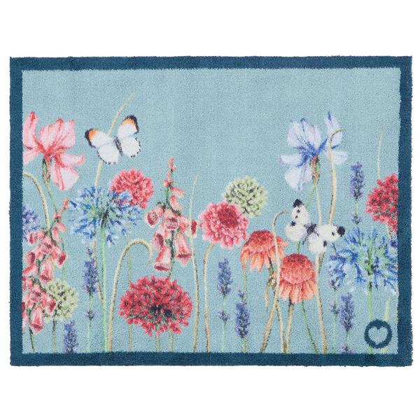 The Butterfly Garden Blue doormat brings a serene and picturesque aesthetic to your home, blending a delicate nature-inspired illustration with high-performance functionality. Set against a soft light blue backdrop, the vibrant wildflower garden and fluttering white butterflies create a tranquil and artistic welcome for any entryway.