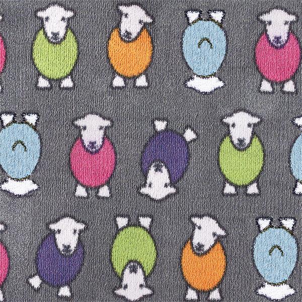 Bring a piece of the Cumbrian landscape into your home with our Marra Grey Herdy washable doormat. Featuring a striking charcoal backdrop, this design highlights the iconic Herdy sheep in a vibrant palette of pink, green, orange, blue, and purple.