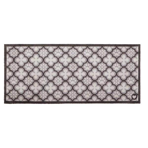 The Paw Print Moroccan Tile washable runner combines a charming, pet-themed aesthetic with practical functionality, making it a delightful addition to any home. Set against a sophisticated grey backdrop, the light grey paw prints are elegantly framed by a dark grey Moroccan tile pattern to offer a stylish yet welcoming atmosphere for your entryway.