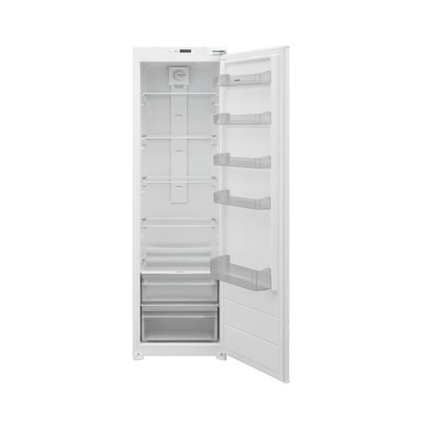 The NordMende RITL399 Integrated 177cm Tall Larder Fridge is a premium built-in cooling solution designed for modern kitchens that require high capacity and a seamless look. Standing 1770 mm tall, this appliance is fully integrated, meaning it is completely hidden behind your kitchen cabinetry door via a sliding hinge fitting, ensuring a sleek, unbroken line across your units. Its primary function is generous chilled storage, boasting a substantial net capacity of up to 300 litres (often specified as 294 litres), which is ideal for large families or those who stock up on fresh ingredients. The white finish of the unit and its focus on concealed installation make it a versatile choice for any kitchen design.