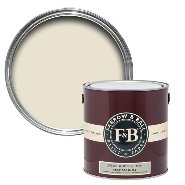 James White No. 2010 is a classic, discerning off-white originally created for a doctor's garden room, featuring the slightest hint of green for a calm, soothing, and airy feel that is especially useful in darker spaces. This beautiful shade is available in Farrow & Ball's Flat Eggshell finish, a low-sheen (20%), super-tough formulation for interior wood, metal, and concrete. The finish is highly scrubbable and stain-resistant, making it robust enough even for durable applications like kitchen cabinets and floors.