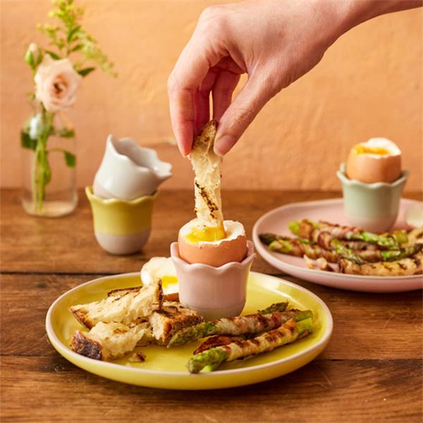 The Jamie Oliver Big Love Excellent Egg Cups Set of 4 is a charming and practical collection of stoneware egg cups designed to add colour and style to any breakfast or brunch table. Each egg cup features a speckled finish in vibrant colours, including pink, yellow, green, and white, giving a rustic yet contemporary look that complements a variety of table settings. Crafted from high-quality stoneware, the egg cups are durable, heat-resistant, and suitable for everyday use. Their comfortable size and stable base ensure eggs are held securely while eating, and the smooth surfaces make cleaning effortless. This coordinated set of four combines functionality with decorative appeal, making it ideal for serving family and guests or as a thoughtful gift for special occasions. The timeless design reflects the playful and practical style of the Jamie Oliver Big Love collection, bringing both charm and convenience to the kitchen.