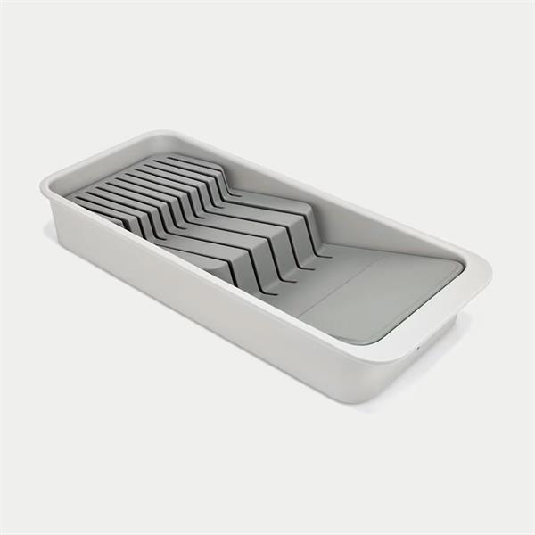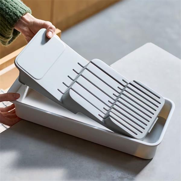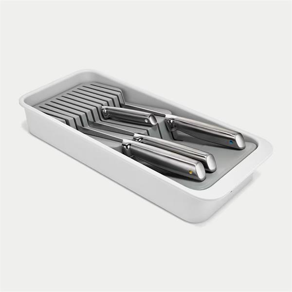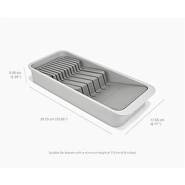 The JJ Drawer Storage 2-Tier Knife Organiser is a smart and space-efficient solution for storing kitchen knives safely and neatly inside a drawer. Designed with two stacked levels, it allows knives of different lengths to be stored separately, maximising drawer space while keeping blades protected and easy to access. Made from durable materials with a clean, modern design, the organiser helps reduce clutter, improves kitchen safety, and fits most standard drawers, making it an ideal choice for a well-organised and functional kitchen.