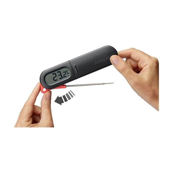 The Joseph Joseph Thermapoint Digital Probe Thermometer is a precise and easy-to-use kitchen tool designed to give fast, accurate temperature readings for meats, poultry, liquids, and other foods, helping to ensure every meal is cooked safely and to perfection. It features a sharp stainless steel probe that penetrates food effortlessly and a clear digital display that shows readings instantly, reducing guesswork and allowing for confident, consistent results. The thermometer’s ergonomic design makes it comfortable to hold and simple to operate, while its compact and durable construction ensures it can withstand regular kitchen use and is easy to store. Ideal for both home cooks and more experienced chefs, it brings convenience, reliability, and peace of mind to everyday cooking and special culinary projects alike.