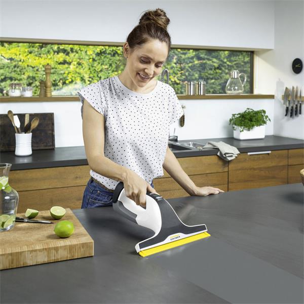 The Kärcher WV 6 Plus N Window Vac stands out as Kärcher's most innovative window vacuum, offering the quickest and easiest path to streak-free surfaces at home. This lightweight, rechargeable handheld vacuum streamlines window cleaning and effectively handles condensation. With a powerful lithium-ion battery providing a substantial 100-minute runtime, the minute-by-minute LED display facilitates efficient cleaning task planning. Ideal for achieving pristine shower screens, tiles, and mirrors, its patented silicone lip technology also excels at sucking up liquid spills from floors and worktops. The WV 6 Plus N comes complete with an additional narrow suction nozzle (170mm), a spray bottle with a microfibre cloth, and a 20ml glass cleaning concentrate for comprehensive surface cleaning.