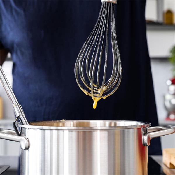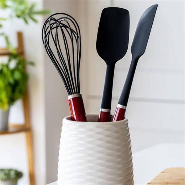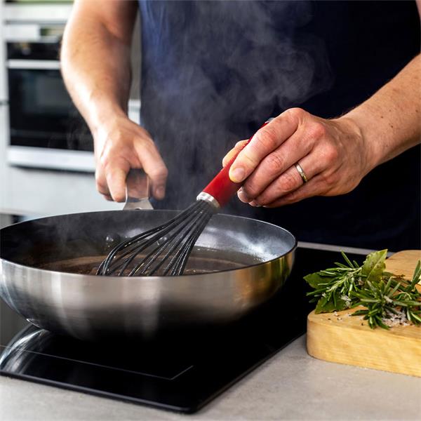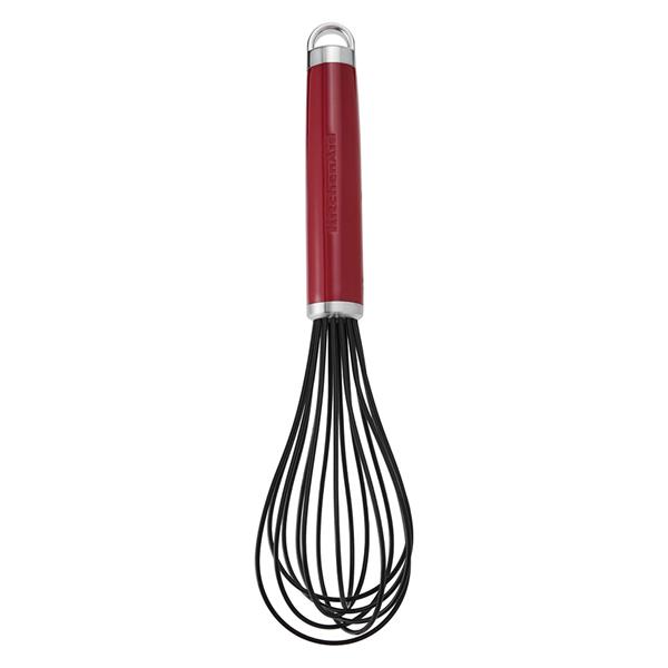 The KitchenAid Classic Silicone Whisk in Empire Red is a durable and stylish kitchen tool designed for efficient mixing and whisking of a wide range of ingredients, from eggs and batters to sauces and dressings. Featuring flexible, heat resistant silicone coated wires, it is gentle on non stick cookware while still delivering excellent mixing performance. The comfortable, well balanced handle provides a secure grip for precise control, while the bold Empire Red colour adds a distinctive and timeless KitchenAid look to any kitchen. Easy to clean and built for everyday use, this whisk combines practical functionality with classic design and long lasting quality.