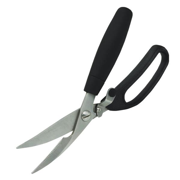 Professional, heavy duty poultry shears with a stainless steel serrated blade and soft grip non-slip handles to ensure you have a comfortable and secure hold. Also features a spring loaded safety lock.