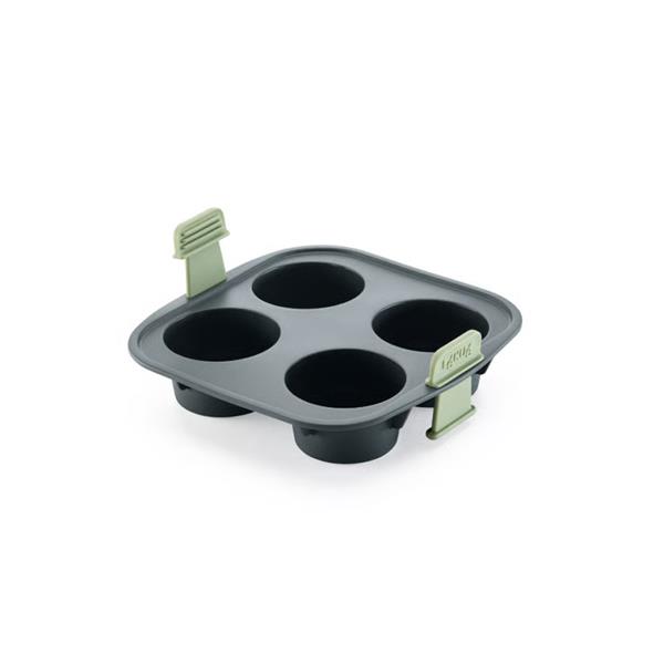 The Lékué Airfryer Muffin Silicone Square Liner is a practical and convenient kitchen accessory designed for baking muffins and cupcakes in an air fryer. It is made from high-quality, flexible silicone that ensures even cooking and easy release of baked goods. The liner features four individual muffin cups and sturdy side handles for safe and comfortable handling. Its compact square design fits most standard air fryers and is easy to clean, being both dishwasher safe and reusable. The product combines functionality with durability, making it a useful addition to any modern kitchen.