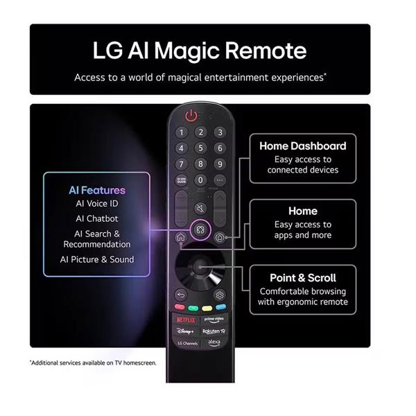 The LG 65" QNED AI 4K Ultra HD Smart TV, model 65QNED82A6B, is a sophisticated home entertainment device that combines impressive picture technology with smart features. Its QNED display, which uses a combination of Quantum Dot and NanoCell technologies, is designed to produce a rich and accurate colour spectrum with enhanced brightness. The television is powered by the Alpha 7 AI Processor Gen8, which intelligently upscales content to near-4K quality and optimises both picture and sound. The webOS 25 smart platform provides easy access to a wide range of streaming services and includes an AI Magic Remote with voice control and an AI Chatbot for intuitive navigation and assistance. With its 60Hz native refresh rate and gaming-specific features, this TV is also a solid choice for gamers.