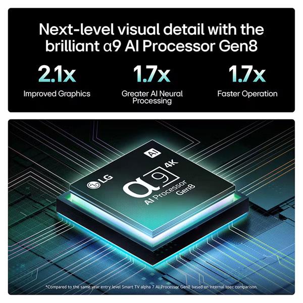 - a9 AI Processor Gen8 intelligently analyses and upscales every frame for enhanced depth, clarity, and realism.