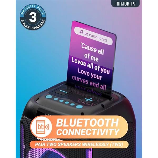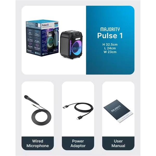 Perfect for everything from backyard barbecues to dance parties, the Majority Pulse P1 Party Speaker offers the perfect blend of performance and convenience. Don’t let the music stop—make every event memorable!