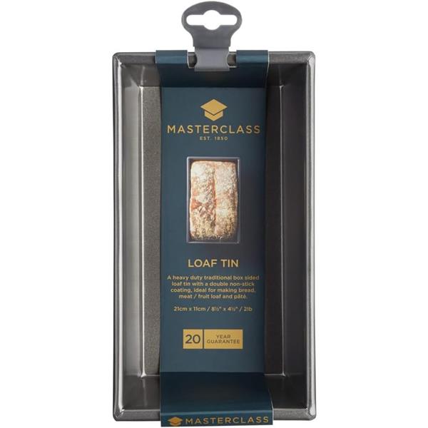 The Master Class Non-Stick 2lb Box Sided Loaf Pan is a robust and reliable piece of bakeware, designed to produce perfectly shaped loaves of bread and cakes. Made from heavy-duty commercial-grade steel, it provides excellent heat retention and even cooking, ensuring a golden-brown crust and a moist interior. The pan features a double-layered, PFOA-free non-stick coating, which allows for effortless food release and simple cleaning. Its box-sided design gives a classic shape to your bakes, while the rolled edges offer extra rigidity and strength, making it a durable and essential tool for any home baker.